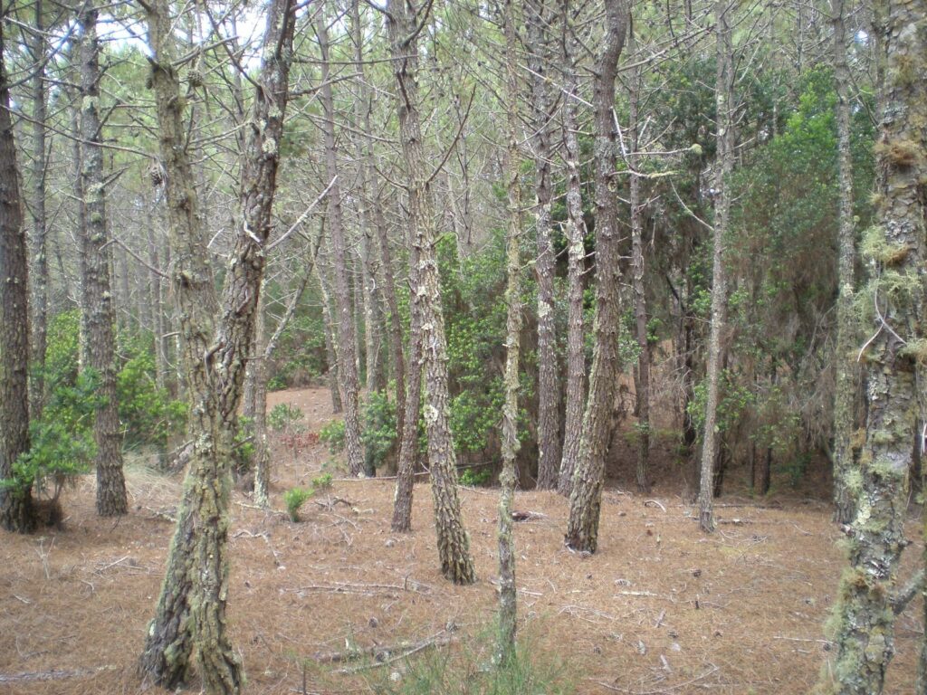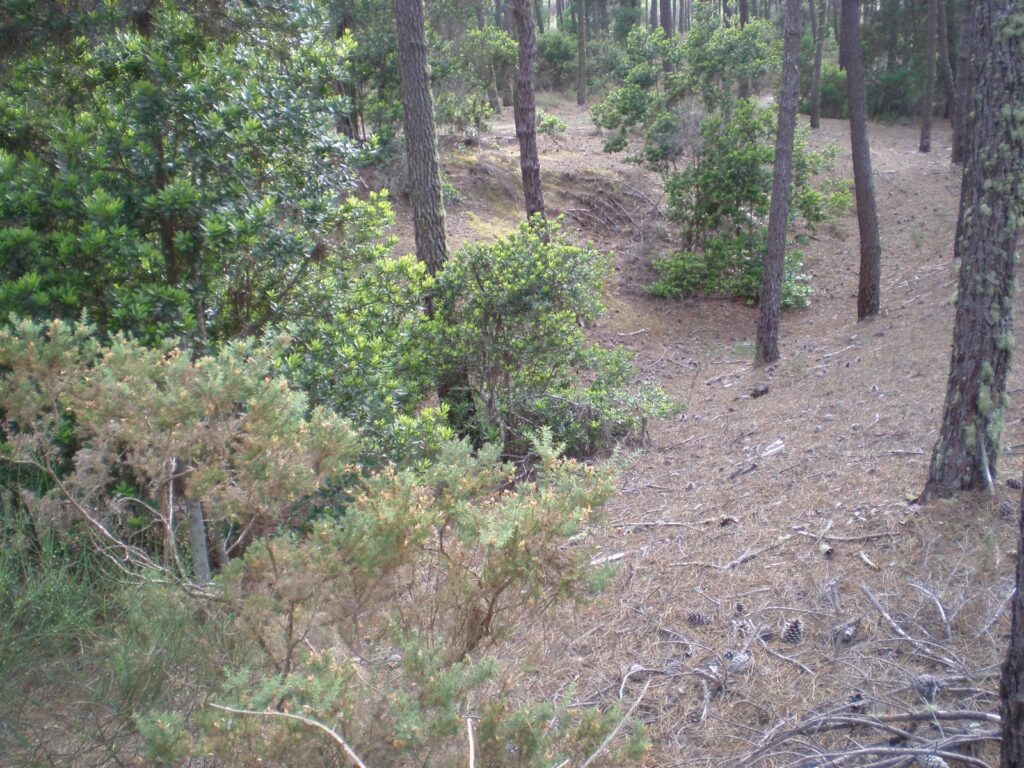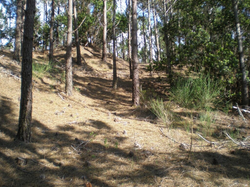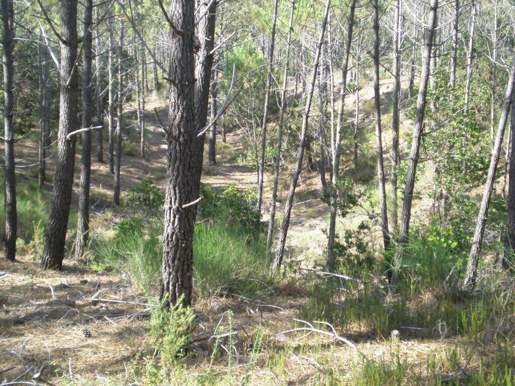 Floresta de pinheiro, com pouca vegetação rasteira, de fácil corrida, no geral com média/boa visibilidade, aqui e ali quebrada por considerável densidade de Acácias e ou Samoqueiros, estes últimos marcados no mapa com o símbolo 418